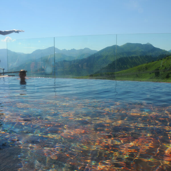 Am Gipfel der Riesneralm wurde ein eindrucksvoller Infinity-Pool errichtet. Die Bauweise ist aus Holz und das Erscheinungsbild mit jenem aus den 30er Jahren sehr identisch. Ein genussvoller Relaxtag auf 1.900 m Seehöhe mit 360° Panoramablick in die Bergwelt der Niederen Tauern!