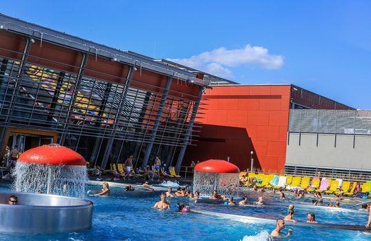 Willkommen im Aqualand Moravia - dem Reich der Wasserattraktionen, beherrscht von Adrenalin und Abenteuer! Hier gibt es mehr als einen Kilometer lange, schnelle Wasserrutschen, eine riesige U-Wave Halfpipe und wunderschöne visuelle Projektionen. -