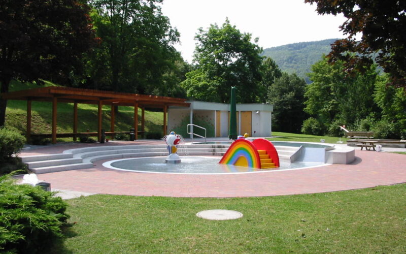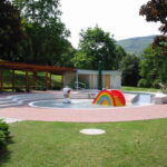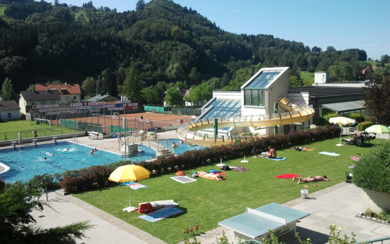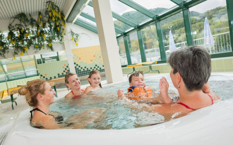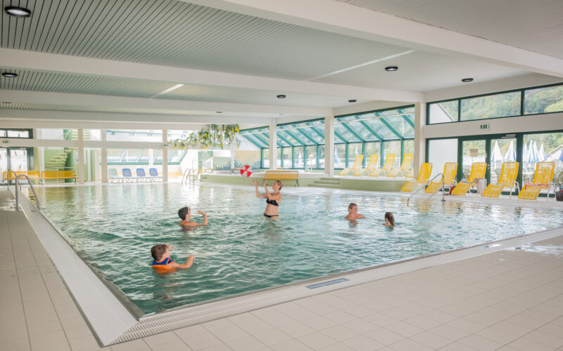 - Hallenbad mit einem 176 m² großen Nirosta-Becken, einem großzügigen Wintergartenareal und einem Mutter-Kind-Bereich. In-Form-Schwimmen und Körper und Geist relaxen lassen. Der Hit für die Kinder! Die Erlebnisrutsche ist 46 Meter lang und garantiert Spaß das ganze Jahr.