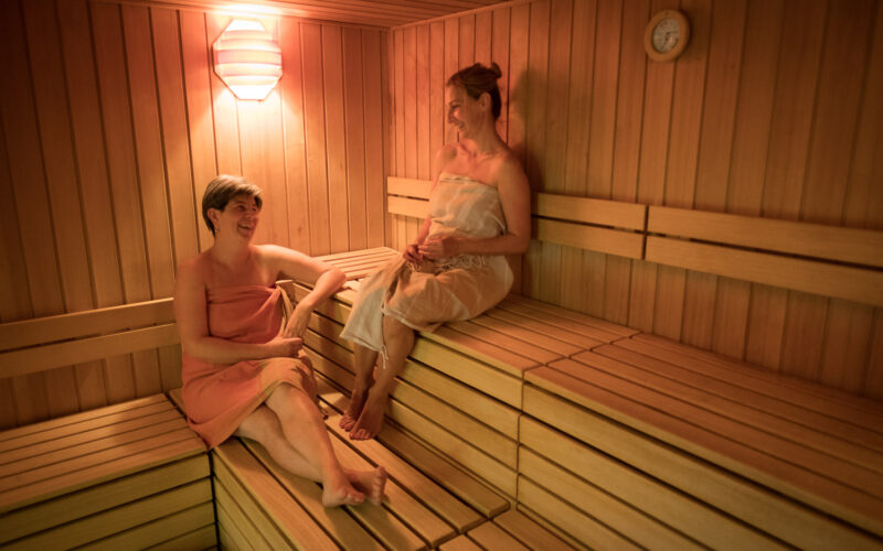 - Großzügige Saunalandschaft mit finnischer Sauna (Aufguss), Bio-Sauna mit entspannendem Kräuterduft und Lichttherapie, Dampfbad, Brausen, Sitzecke und Frischluftbereich.