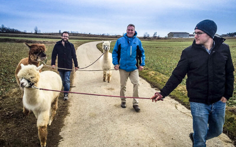 Packt eure Kinder, Schwiegereltern und alles was gehen kann ein. Die Alpaka-Wanderung ist für Alt und Jung. Die Gruppengröße einfach bei der Anfrage bekannt geben