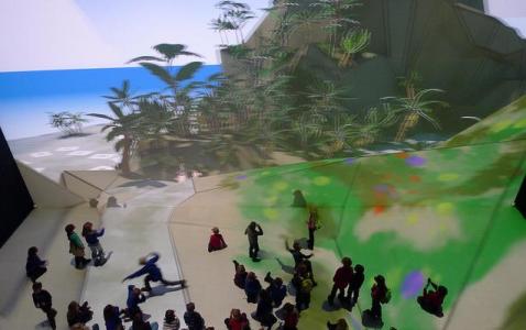 Im Deep Space werden auf 16 x 9 Meter großen Projektionsflächen auf Wand und Boden weit entfernte, unbekannte oder historische Orte in 2-D und 3-D erlebbar. Reisen Sie an historische Stätten, zu künstlerischen Meisterwerken, an fantastische Orte und ins Weltall.