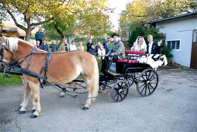 Der romantische Pferdhof lädt Kinder und deren Begleitung zu einer romantischen Kutschenfahrt mit zwei Haflingern ins Südburgenland.