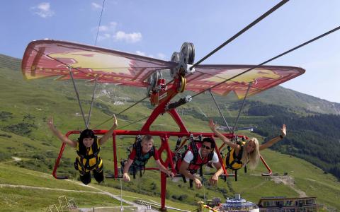 Mit bis zu 80 km/h geht es für bis zu vier Personen den Berg hinab! Bis zu 4 Personen gleichzeitig können dieses Abenteuer erleben! Kinder dürfen ab einer Größe von 1,30 Metern oder ab 10 Jahren mitfliegen!