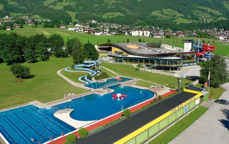 Auf 1.700m² Wasserfläche können sich große und kleine Gäste im Freibad Fügen so richtig austoben.