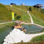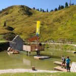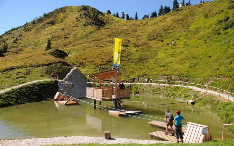 Eingeschmiegt in die Gipfellandschaft des sogenannten „Riesner-Krispen“ bietet der HochSEEsitz eine Vielfalt an Aktivitäten für Kinder und Erwachsene: Gemeinsam Floß fahren, kraxeln auf einem künstlich angelegten Felsen, über eine Slackline balancieren oder mit etwas Geschicklichkeit einen der „Holzfische” aus dem See fischen.