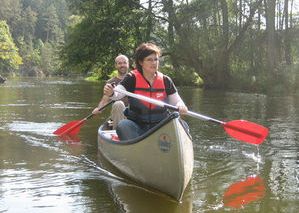 Die beliebteste Tour für Einsteiger, Familien mit Kindern und aktive Senioren ist in Kollmitzgraben oberhalb der Kollmitzer Wehr. Hier ist ein paddeln ohne Hindernisse und ohne Wehrumtragungen möglich! 2-3 Personen paddeln jeweils in einem Kanu.