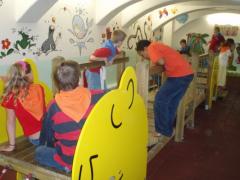 Das betreute Programm dauert 2 Stunden und die Kids dürfen nachher noch im Kinderclub spielen und sich entweder auf dem Klettergerüst oder der Riesenrohrrutsche austoben.