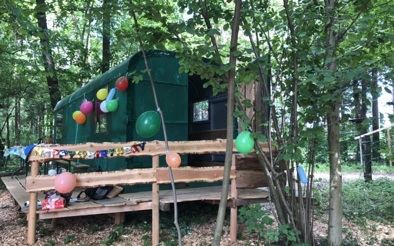Im 3000m² großen MiniKletterpark wird geklettert und gespielt und das in einem eingegrenzten Bereich mit 25 Kletterübungen und Tischen und Bänken. Sollte das Wetter nicht perfekt sein, steht auch ein alter Zugwagon als Unterschlupf bereit.