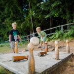 Die Kinder sind bei fast jedem Wetter im Wald unterwegs. Überwinden lebende Brücken, lassen Steine schweben, bauen Waldfahrzeuge, machen Mutproben, sind auf der Suche nach dem geheimnisvollen Schatz uvm. Auf alle Fälle haben wir jede Menge Spass und die Gemeinschaft steht im Vordergrund. Besonders freut es mich, wenn auch Kinder mit besonderen Bedürfnissen bei den Gruppen dabei sind. Wenn plötzlich die eingeladenen Freunde zur selbstverständlichen Transporthilfe für ein Kind im Rollstuhl werden, dann wird dieses Erlebnis zu einem ebenso wertvollen Schatz wie die vergrabenen Goldstücke. Manchmal besuchen wir unsere Tiere im Stall die dann gefüttert und gestreichelt werden können (Kühe, Kälber, Pferde, Katze, Schweine)