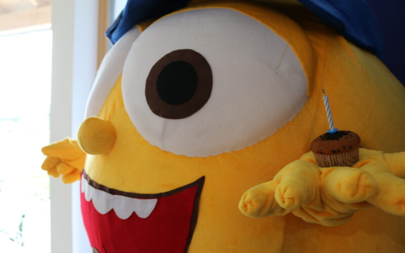Geschenkübergabe mit unserem Maskottchen Solarix
