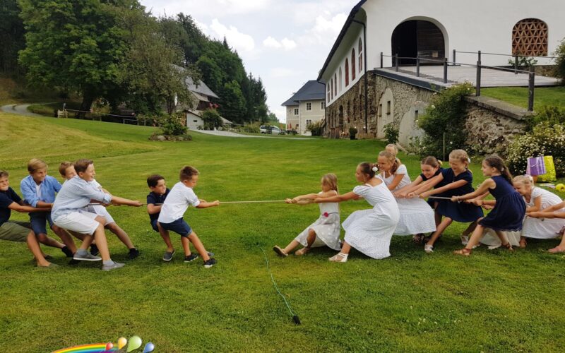 Mit spannenden Action- und Wettbewerbsspielen wie Seilziehen, Sackhüpfen, Dosenwerfen und vielen anderen tollen Gruppenspielen sorgen wir bei den Kindern für jede Menge Spaß und Bewegung.