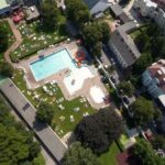 In diesem kleinen, beschaulichen Bad befinden sich ein großes Becken, ein Familienbecken, und ein Kinderbecken. Eine Rutsche darf genauso wenig fehlen, wie eine Sandkiste, Spielgeräte, Trampoline und Tischtennistische.