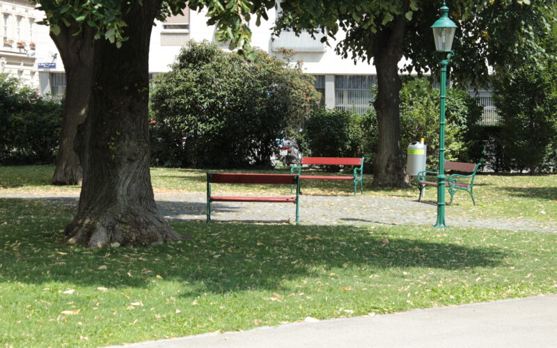 Dieser Park, benannt nach der ersten unabhängigen Nennung Österreichs als Ostarrichi bzw. Markgrafschaft Österreich, zeichnet sich vor allem durch seine große Rasenfläche aus. Flankiert von verschiedenen Bänken am Wegesrand und einer Baumgruppe mit im Halbkreis stehenden Bänken wird hier vor allem Muse zur Rast geboten. Dennoch kann man auf dem Rasen diversen sportlichen Betätigungen nachgehen, wie zum Beispiel Ball spielen.