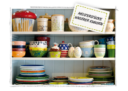 1. Die Kinder wählen aus über 250 Keramikformen aus. Das Sortiment reicht von Tassen, Tellern, Müslischalen über Salatschalen, Vasen, Krügen und Kannen, Dosen, Fliesen, Türschildern, Spar-Büchsen bis zu Kuchen- und Tortenplatten sowie Tellern und Platten und vielen mehr.