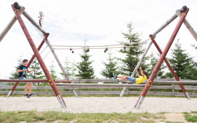 Baumeln, schwingen, wippen und die Aussicht genießen: Der Schaukelweg auf der Mönichkirchner Schwaig ist ein abwechslungsreicher Rundwanderweg mit Wippen, Schaukeln und Relax-Elementen für die ganze Familie.