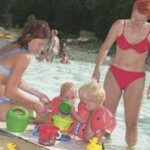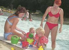 Auch die ganz kleinen Besucher finden hier tolle Attraktionen. Im Kinderbecken gibt es eine eigene Babyrutsche und einen Spielplatz mit