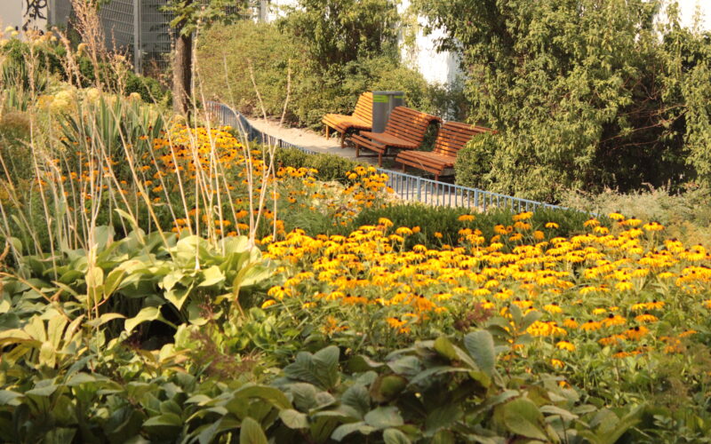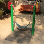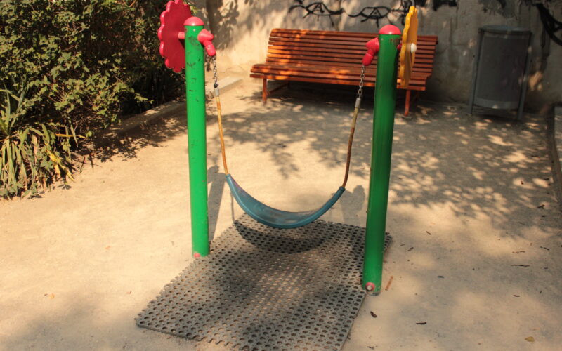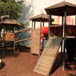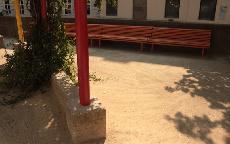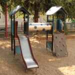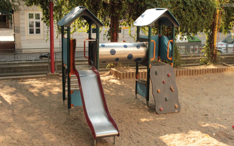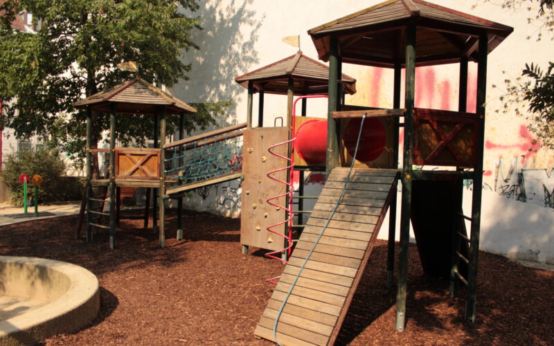 Durch den Abriss von Gebäuden konnte Platz für diesen Spielplatz für Kinder und Jugendliche geschaffen werden. Im vorderen Teil befinden sich viele Spielmöglichkeiten für alle Altersgruppen. Der hintere Bereich beherbergt eine bepflanzte Grünfläche und bietet Platz für Ruhe und Entspannung.