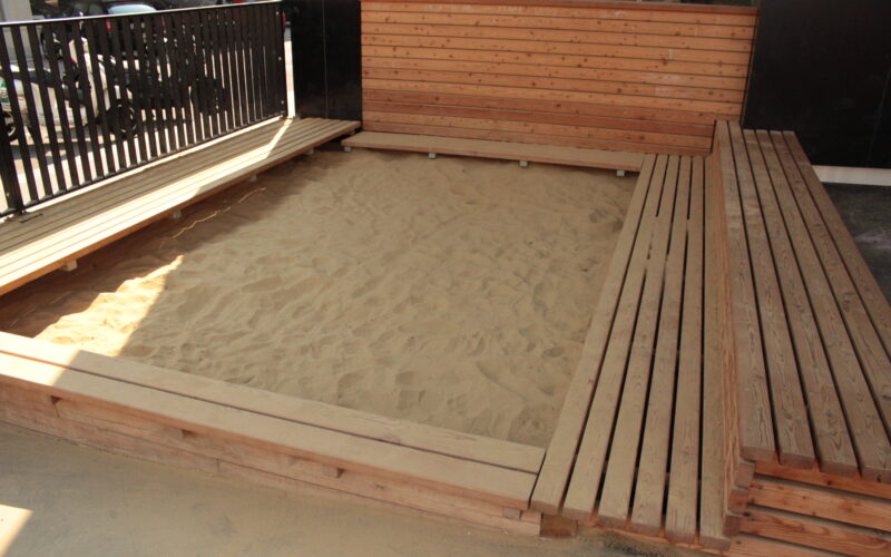 Dieser Spielplatz für Kinder und Jugendliche bietet fast keine Spielgeräte, dafür allerdings eine große Fläche mit Vertiefungen und Erhöhungen für Skater.