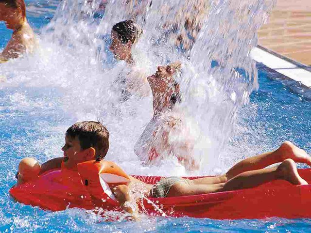 Neben einer großzügig gestalteten Liegewiese verfügt das Bad über ein Erlebnisbecken mit Riesenrutsche, lustigen Schwallbrausen und einem Wasserpilz, der besonders bei Kindern beliebt ist.