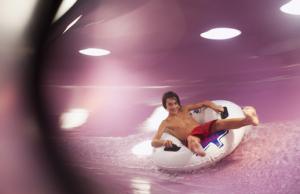 112 Meter pures Quietsch-Vergnügen. Kein Wunder bei den Lichteffekten, die diese Rutsche bietet: 20 Meter Running Light und gläserne Röhre! Geeignet für Kinder ab 6 Jahren. Und für alle, die gerne einmal 25 km/h zurücklegen. Und zwar ohne Fahrrad und ohne Auto!
