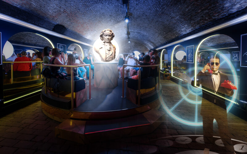 Familien können in ein immersives 360° Raumerlebnis eintauchen und mit VR-Brillen den Lauf der Wiener Musikgeschichte miterleben.