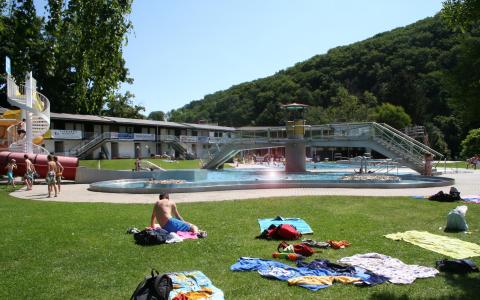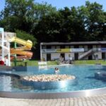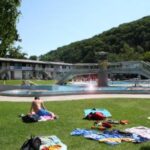 Weitläufige Liegeflächen laden zum Entspannen ein, sowohl auf der Wiese als auch auf Holzpritschen. Das Beckenareal umfasst: