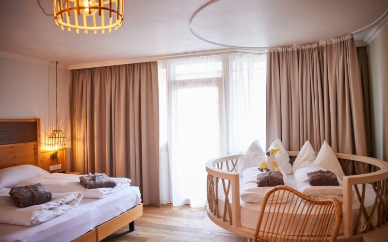 Ein herzliches Haus mit viel Raum für Fantasie, ein Ort, an dem selbst Erwachsene wieder zu Kindern werden und ein Platz, an dem der herausfordernde Spagat zwischen Erholung und Abenteuer mühelos gelingt. Das ist das fabelhafte Verrückte Haus & Familienhotel EdeR FriDa in Maria Alm. Kleinen wie großen Entdeckern stehen hier sieben außergewöhnliche Zimmerkategorien offen: Den Beginn machen jene Rückzugsorte mit der Bezeichnung „LeChic“. An den Wänden schmucke Blumen, neben der Entspannungsecke direkt eine fulminante Abenteuerausrüstung, kommen darin Weltenbummler und alle, die es noch werden wollen, voll auf ihre Kosten. Sich wie ein Äffchen im Baumhaus von Seil zu Seil zu schwingen oder sich in der Regendusche wie ein Löwe unter einem tropischen Wasserfall zu fühlen – das gelingt hingegen in den „Dschungel“-Zimmern im Handumdrehen.